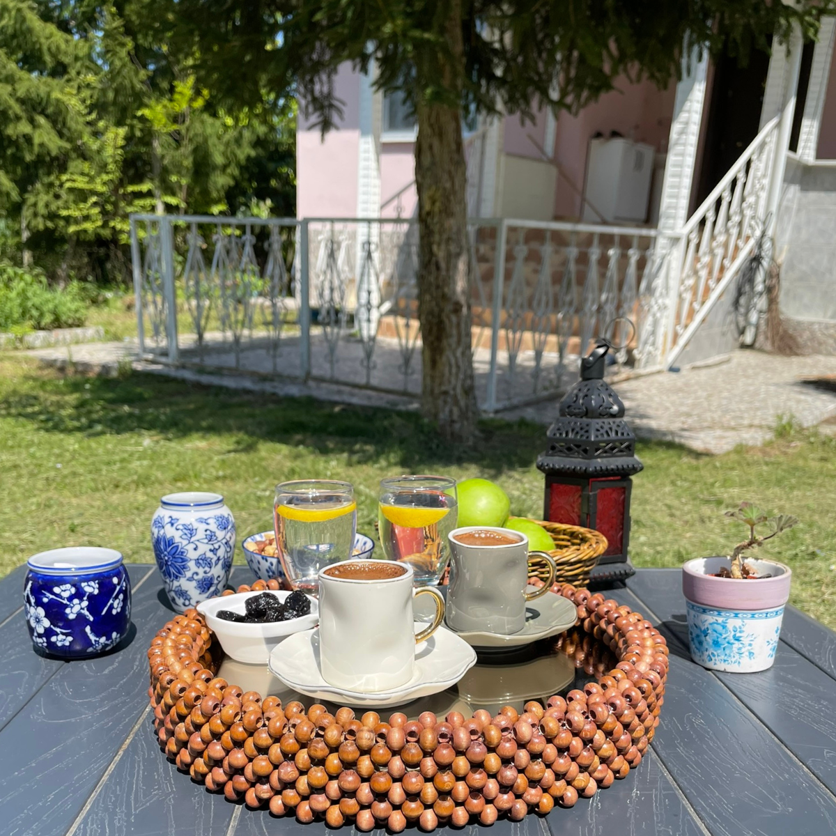 Bu el yapımı ahşap boncuk aynalı tepsi, evinize doğal ve zarif bir dokunuş katacak. İçecek sunarken veya dekor amaçlı kullanabileceğiniz bu tepsi, göz alıcı ayna detayı ile dikkat çekiyor. Ahşap ile uyumlu bronz ayna kullanılarak tamamlanmıştır.